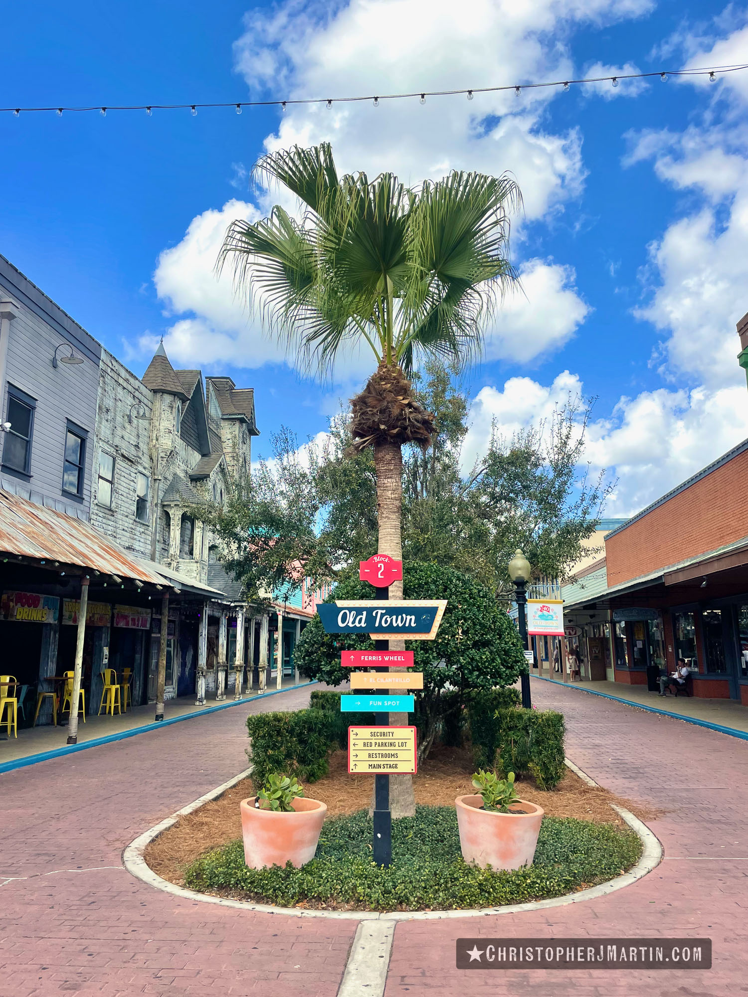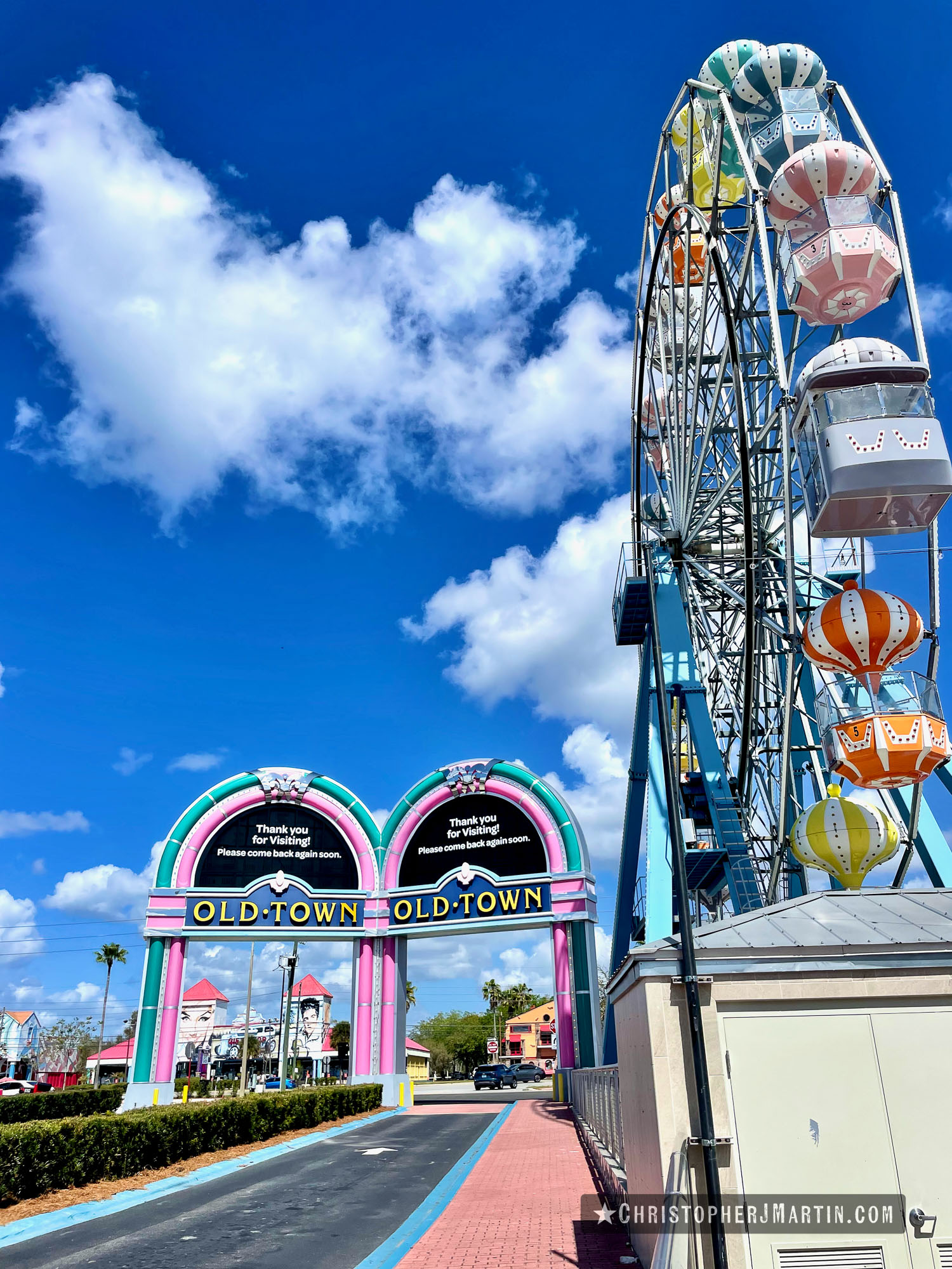 Before heading to the Orlando airport, we decided to make a quick stop nearby at Old Town in Kissimmee, Florida. Celebrating “40 years of Quirky Cool” during out 2026 visit, Old Town is sort of an outdoor mall with fun, unique shops and restaurants combined with an amusement park or carnival. Best of all, it is free to park and enter.