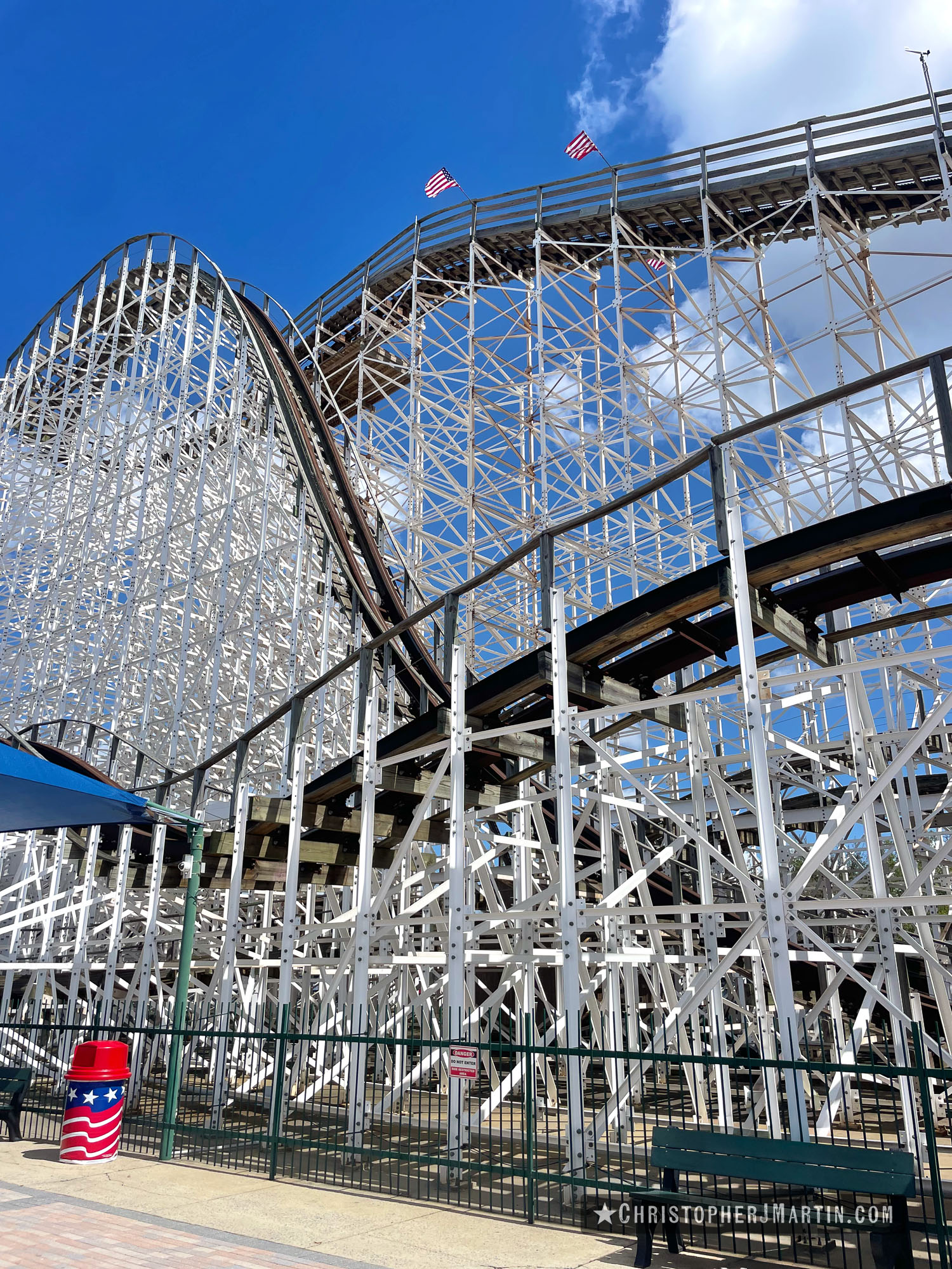 Among the attractions, the “Mine Blower” is one of the coolest. This coaster is a combination of steel infrastructure and wooden track and even does an inversion — not something you see everyday!