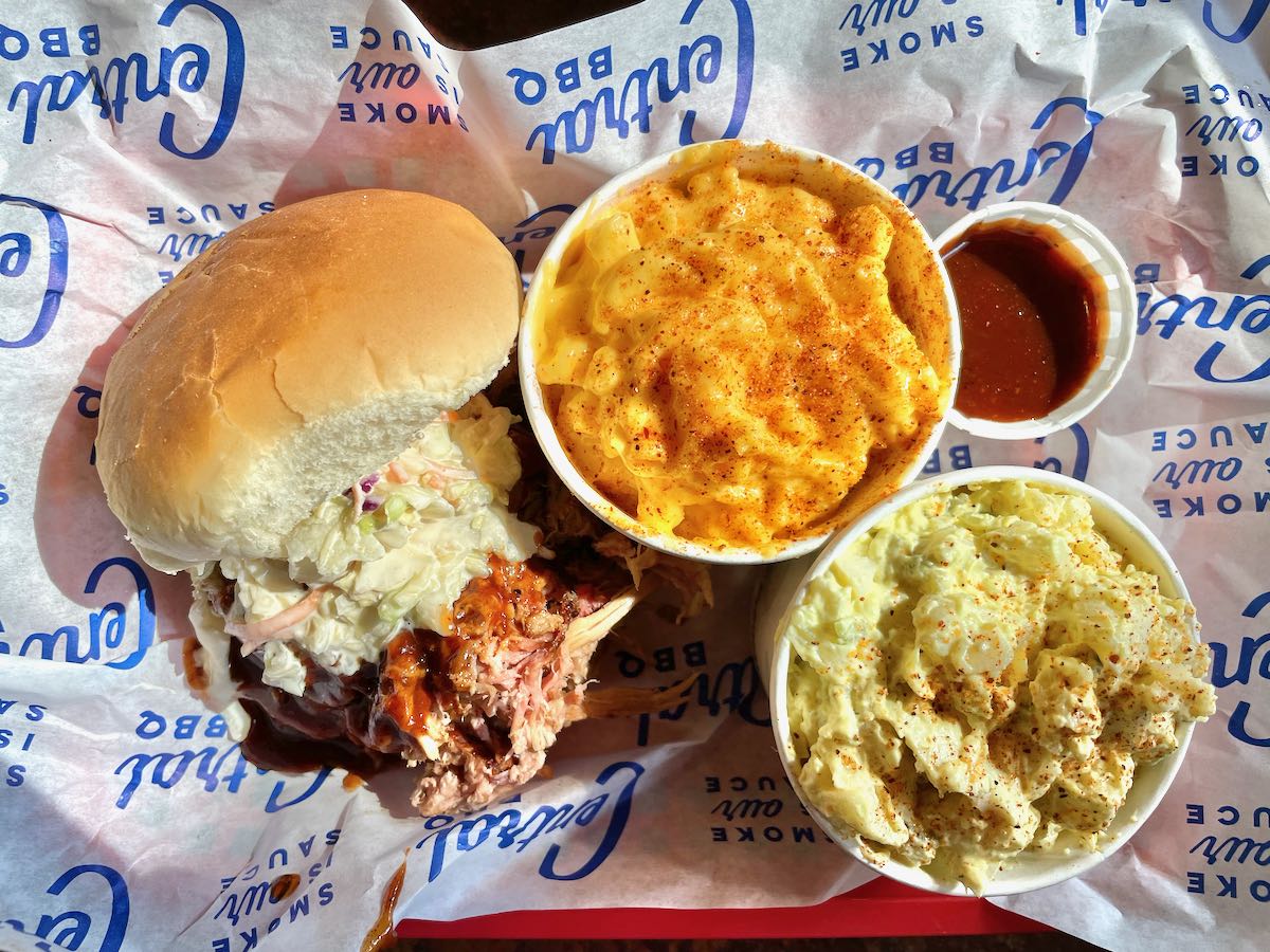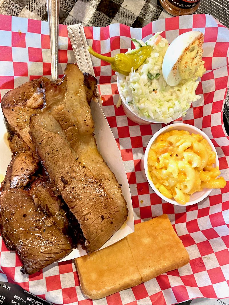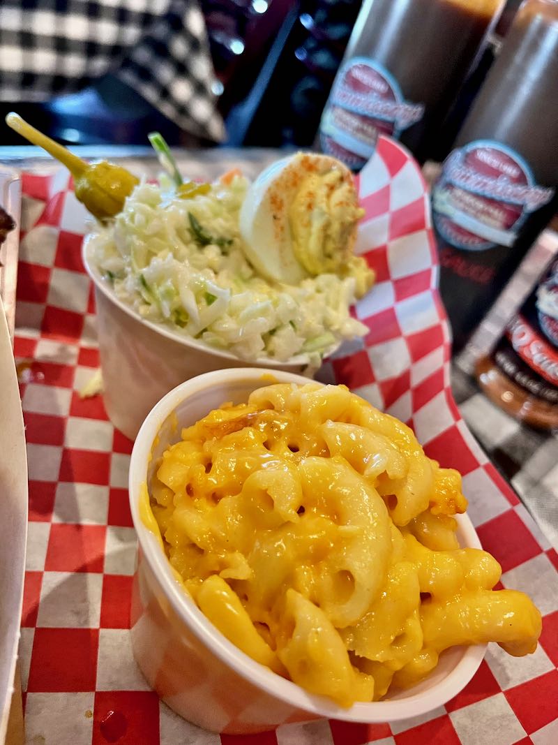 For this meal, I went with the brisket plate with cole slaw and mac and cheese. The brisket had good flavor, but overall was not my favorite. There were two bbq sauces: one hot, one regular. Both had unique flavor (maybe rosemary someway somehow?) and a good amount of sweetness to them. Overall, I liked the spicy much more. The cole slaw was solid — the standard kind of cole-slaw-you’ve-had-a-million-times. The Mac and cheese felt the same — good, no real surprises here.