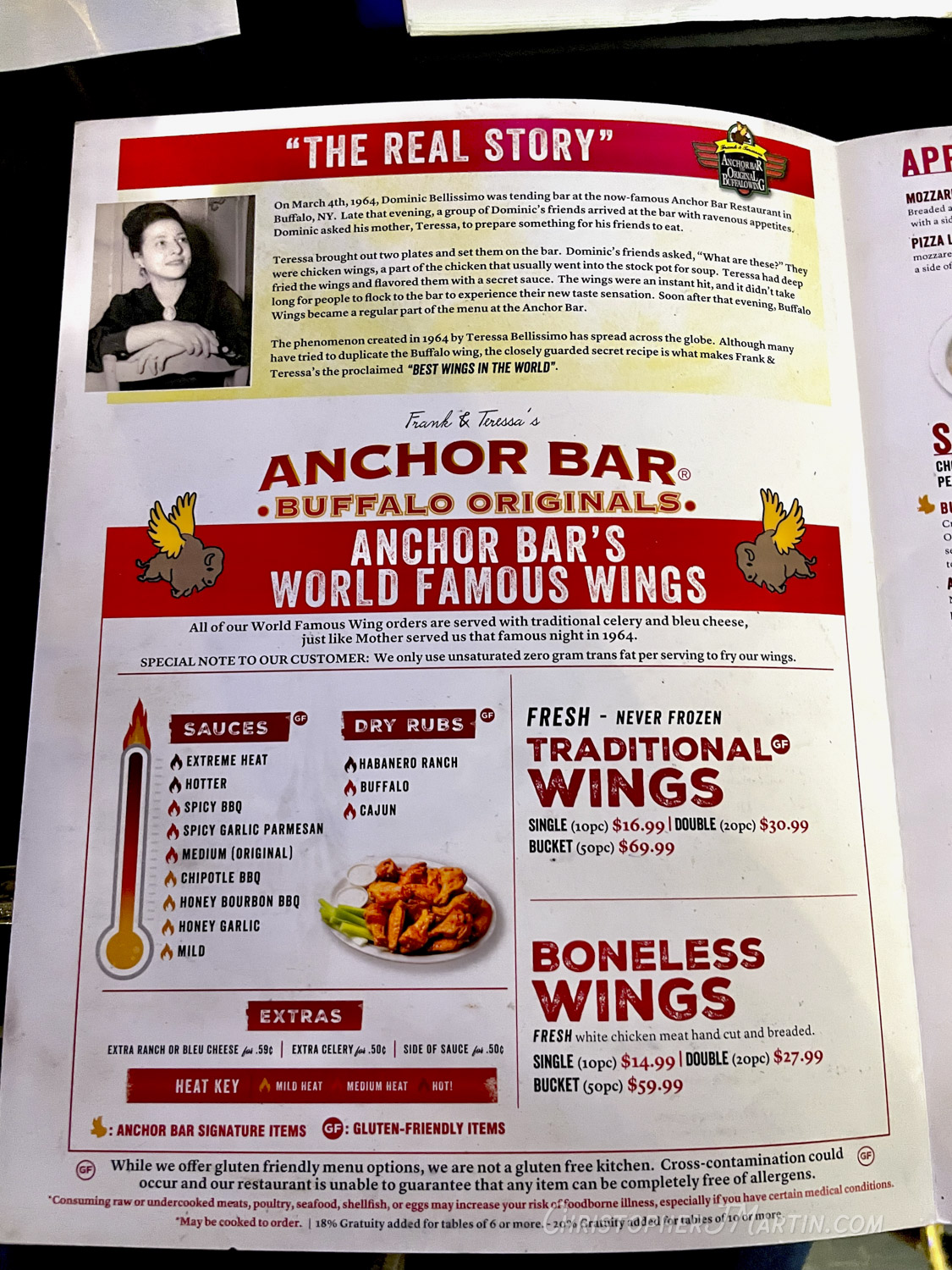It’s not 100% necessary to ask this question, but are Anchor Bar’s the best wings in the world, as the menu suggests? There certainly is some stiff competition out there. Places like J Timothys Taverne or my hometown favorite Tavern on the Hill in Philadelphia come to mind as distinct competitors. I’m not sure these Anchor Bar wings would be my personal #1, but they should definitely be in the discussion as a top wing.