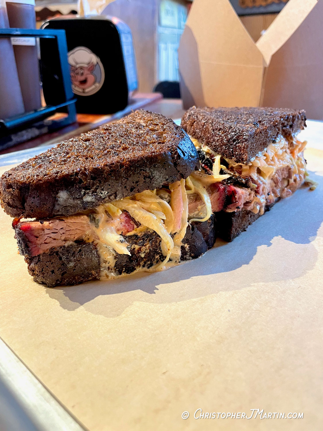 At a new BBQ spot, I often like to sample as many of the meats as possible and the BBQ sauces. But when I saw the Brisket Reuben on the menu, I immediately made an exception and I am so glad I did.