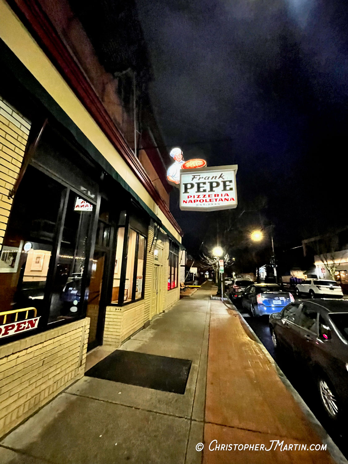 Having read several books about pizza over the years, in connection with my responsibilities as a pizza reviewer for the Wildwood Pizza Tour, I had heard the names of these pizzerias in the past. Pepe’s on Wooster Street is popularly considered the original New Haven spot and, in a documentary I skimmed, the New Haven pizzeria that my hero Henry Winkler, the Fonz, recommends! Say no more!