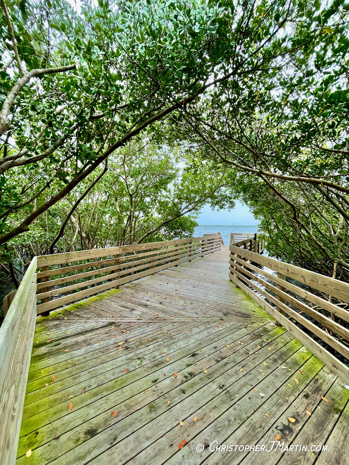 The park borders up against Mobbly Bay, which ultimately connects up with Old Tampa Bay… almost like a bay within a bay. A boardwalk trail takes you to views of the bay and through the interesting ecosystem that makes up the space between the water and the dry land. Mangroves (or at least trees that seem like mangroves) make up a lot of this transition section.