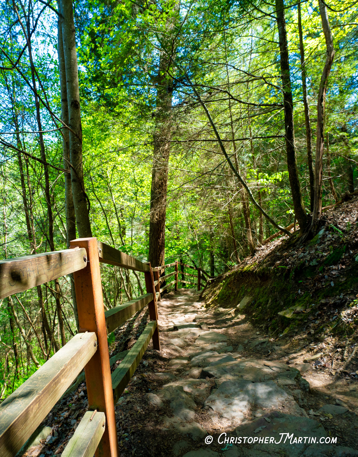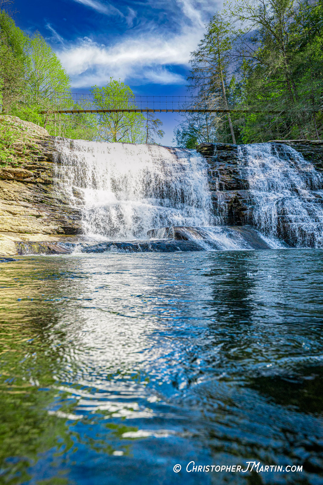 Cane Creek Falls is the first waterfall you encounter. It is a spectacle in its own right, only overshadowed by the knowledge that a 256 waterfall awaits. The amazingly picturesque and fun-to-walk-across swinging bridge above it leads to the Overlook Trail and 3 more waterfalls as well as cliff side views.