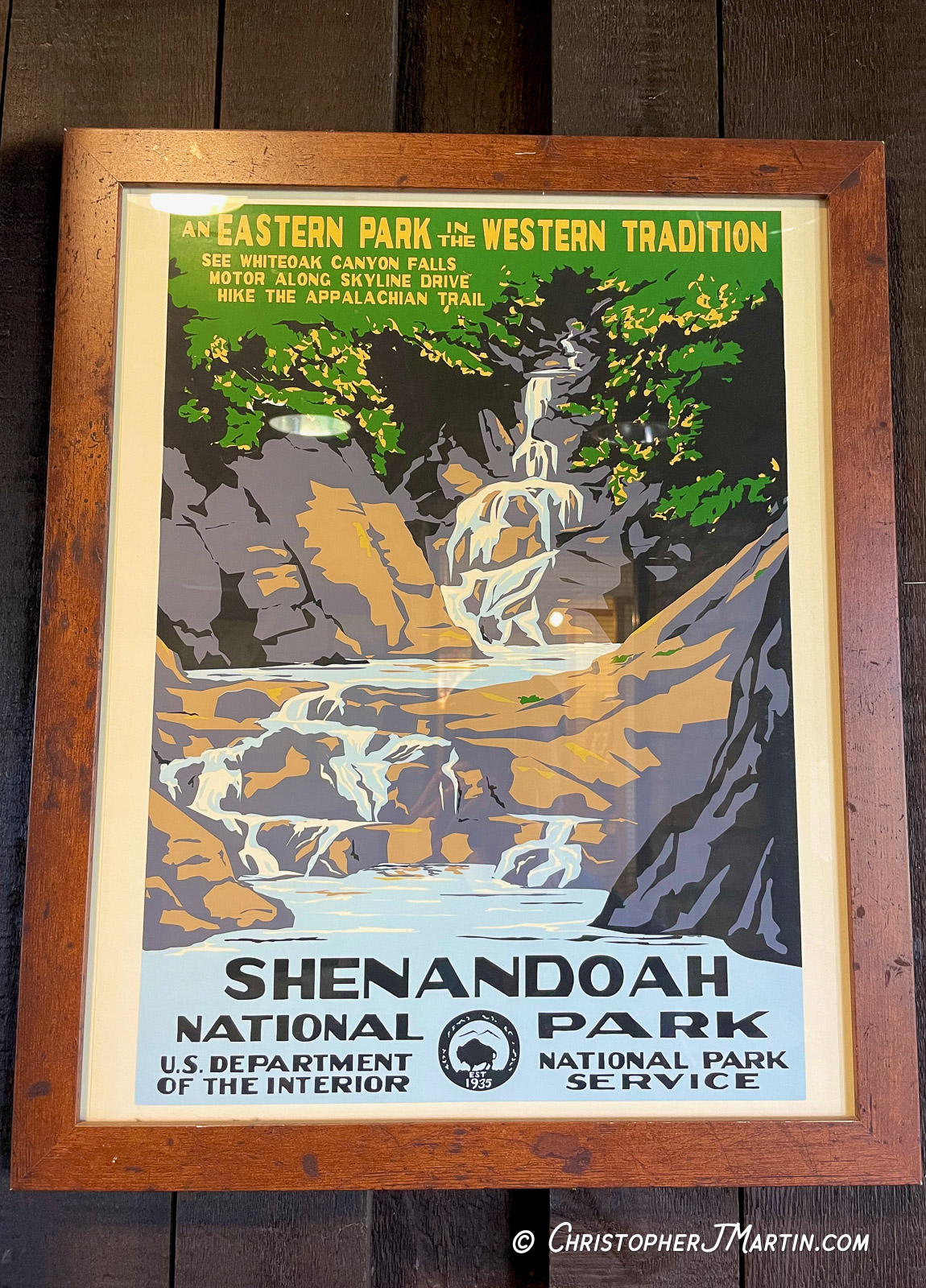 Of the places I wish I spent more time, the Big Meadows Visitor Center is at the top. This spot has some nature trails and a lot information of the construction and history of Skyline Drive. They did a nice job with this exhibit and I wish I had more time to devote to it. In a place like Shenandoah, you’re always feeling short on time, and this Visitor Center took a brutal hit as a result. There was also a video in a theater, a gift shop and restrooms.