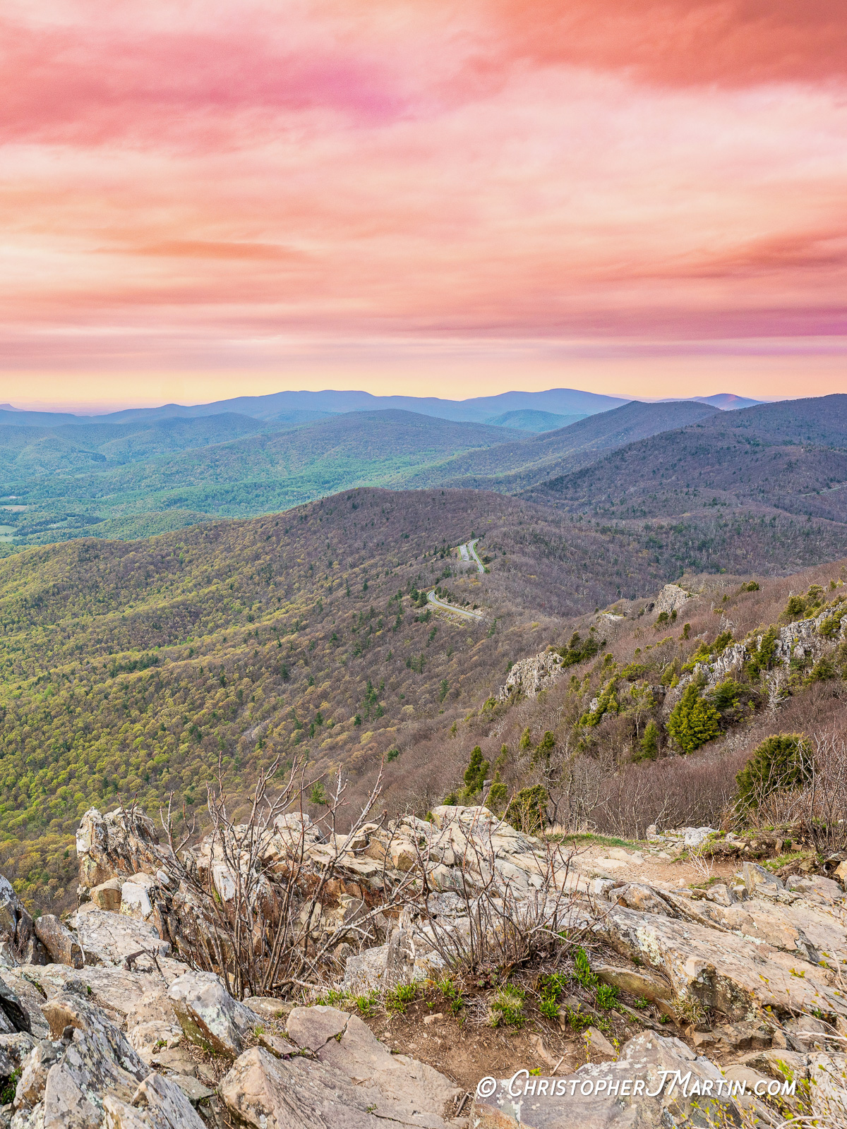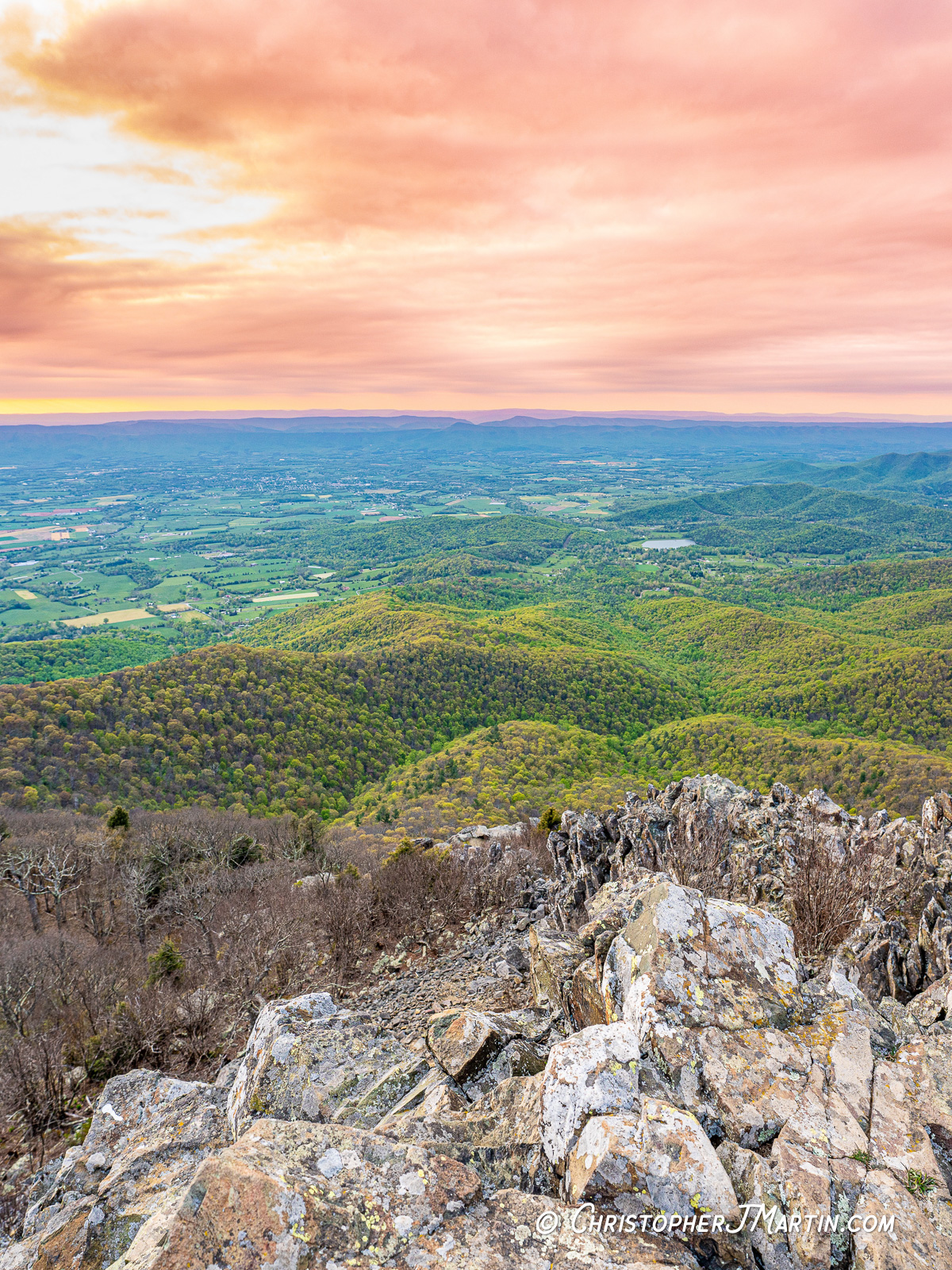 I planned to begin from the southern end of Skyline Drive via Waynesboro and work my way north. To set myself up for an easy start, I planned to spend the night in Charlottesville, Virginia about 25 minutes from Waynesboro. Since I still had a little bit of time before sunset on my travel day, I couldn’t resist checking out the northern end of the Blue Ridge Parkway and, specifically, Humpback Rock, which has been on my want-to-see list for a few years! It did not disappoint! A very steep 0.8-mile trail, which took me 20+ minutes at full hustle, led to this overlook.