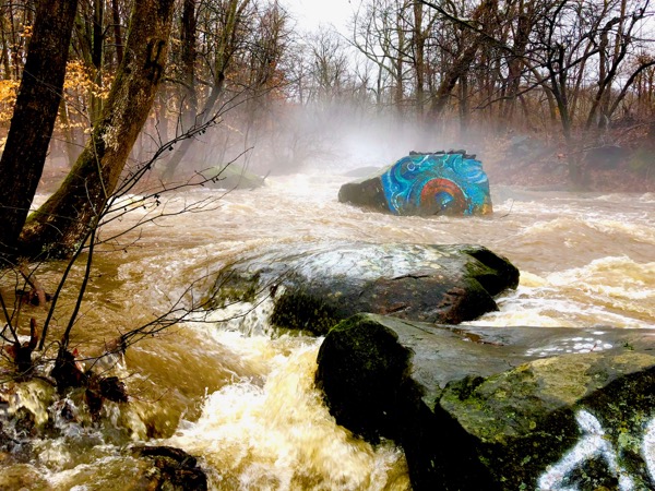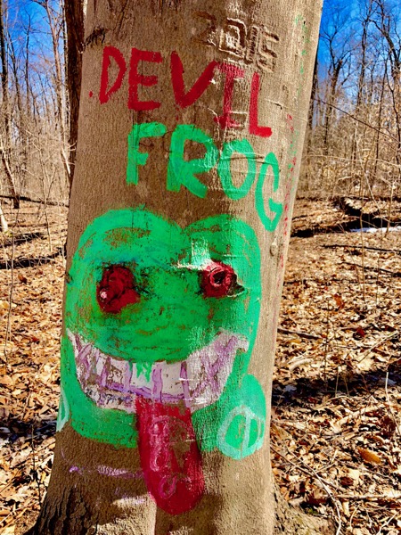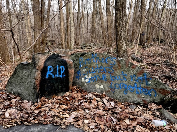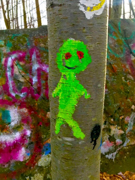 I wish I was a better artist and could positively contribute to the art that appears in St. Peters Village — this post and these photographs are, in part, a way for me to praise the faceless, ongoing community of artists who make these woods interesting and unique. I am always excited to find what’s new, investigate new sections of the woods, and enjoy the inevitable curiosity and exploration these woods prompt.