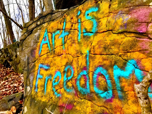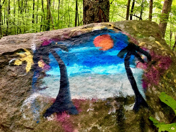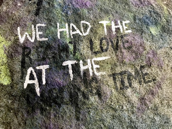 In my research, i discovered mostly negative online comments towards the art in the St. Peters woods, with several folks condemning the “graffiti”. I love nature, support conservation, and understand the “graffiti” argument, yet I couldn’t disagree more. St Peters woods are a thought-provoking, living art exhibit, showcasing many emotions and experiences of the extraordinary lives we share. The pros outweigh the cons. True art happens among this forest canvas.