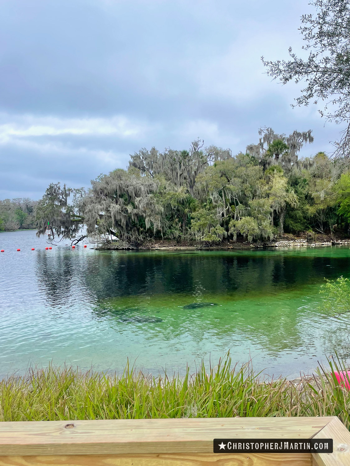 Despite visiting on a gray day, the vibrant blue green water here is beautiful. The steady 72 degree temperature of the water is the reason manatees flock here in the winter.