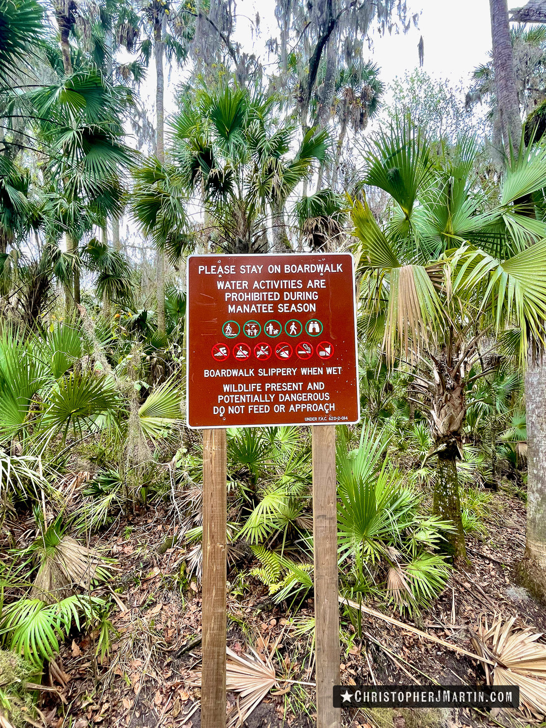 Cutting across central Florida from Sanford to Saint Augustine, I made a pit stop at Blue Spring State Park to check out the “Winter Home to the Manatee”.